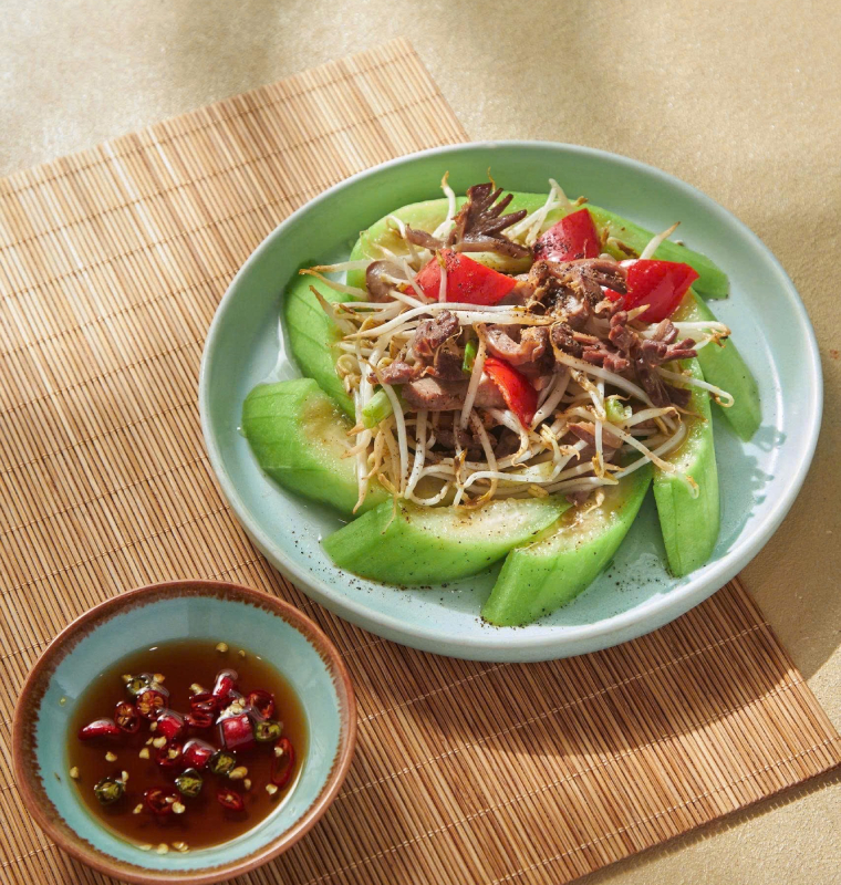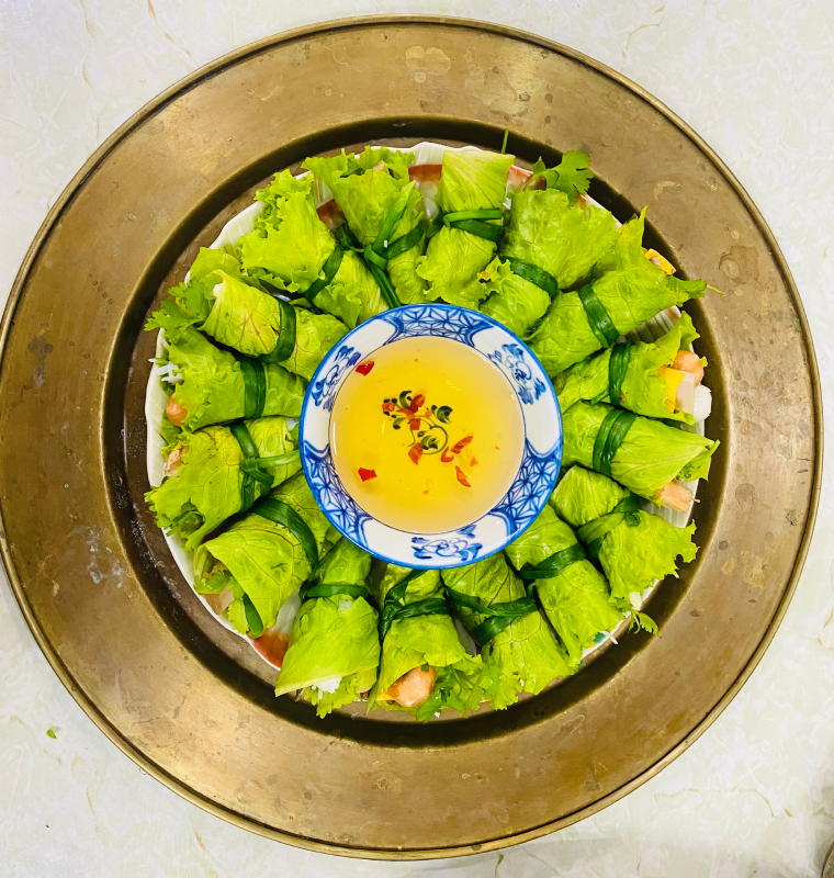 Ảnh trên: Tiệc mắm rươi của người Hà Nội, ảnh dưới: Mướp xào giá và cuốn diếp Hà Nội