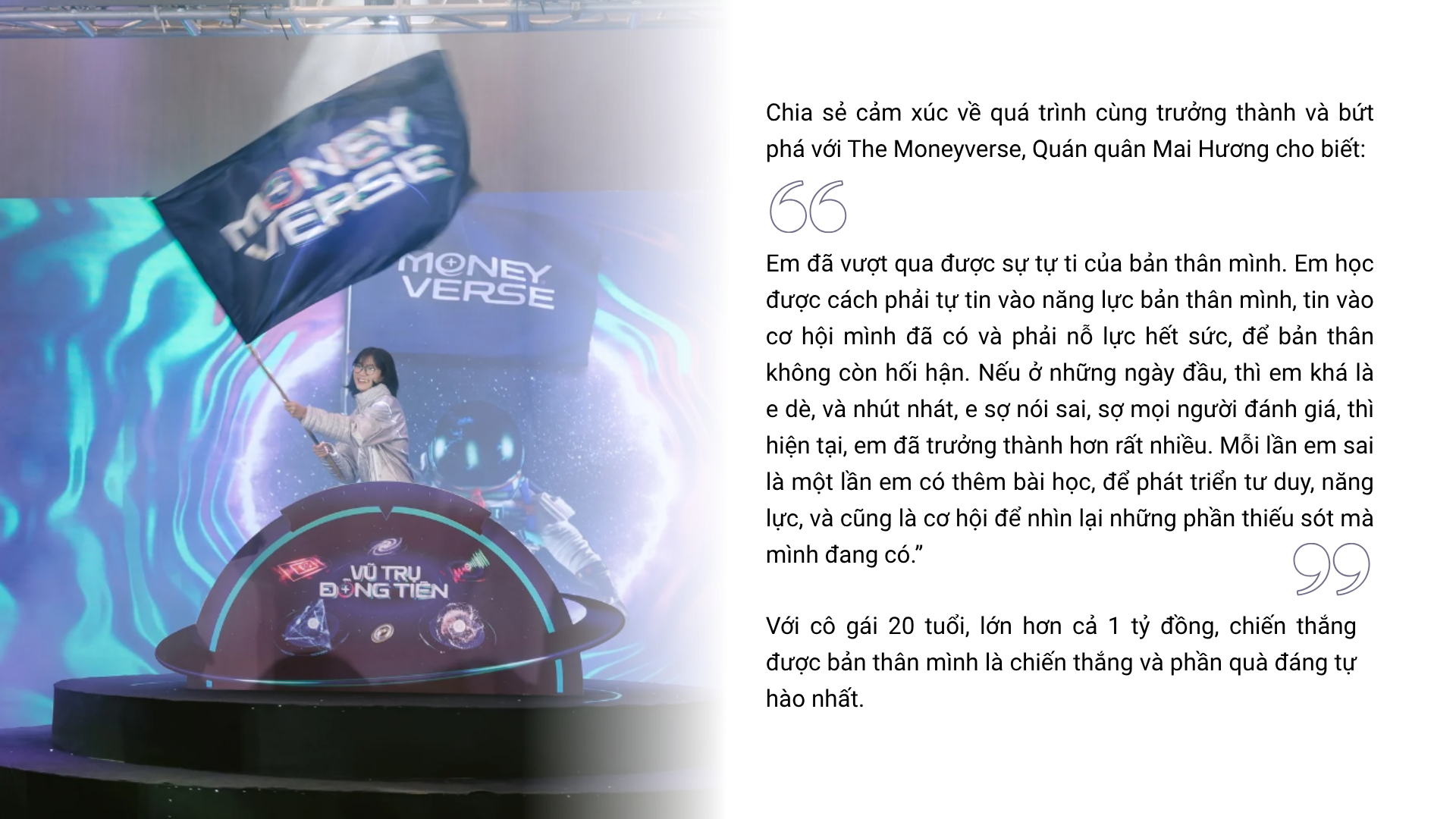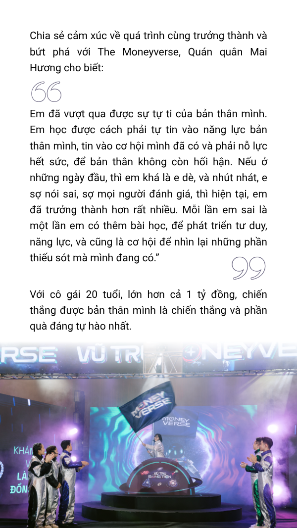 Nữ sinh 20 tuổi trường Đại học Hàng Hải Việt Nam đã thành công vượt qua hơn 32.000 thí sinh, 1.000 khán giả, top 3 mùa trước, giám khảo Tỷ phú và cả Multi-Agent AI để giành giải thưởng 1 tỷ đồng - 1 sự nghiệp. Khoảnh khắc Phạm Thị Mai Hương chạm tay vào ngôi Quán quân The Moneyverse 2025 không chỉ khép lại một mùa giải rực rỡ, mà còn đánh dấu bước trưởng thành mới, tầm vóc mới của một gameshow sáng tạo đang định nghĩa lại cách người trẻ Việt Nam học – hiểu – và làm chủ đồng tiền trong kỷ nguyên số.