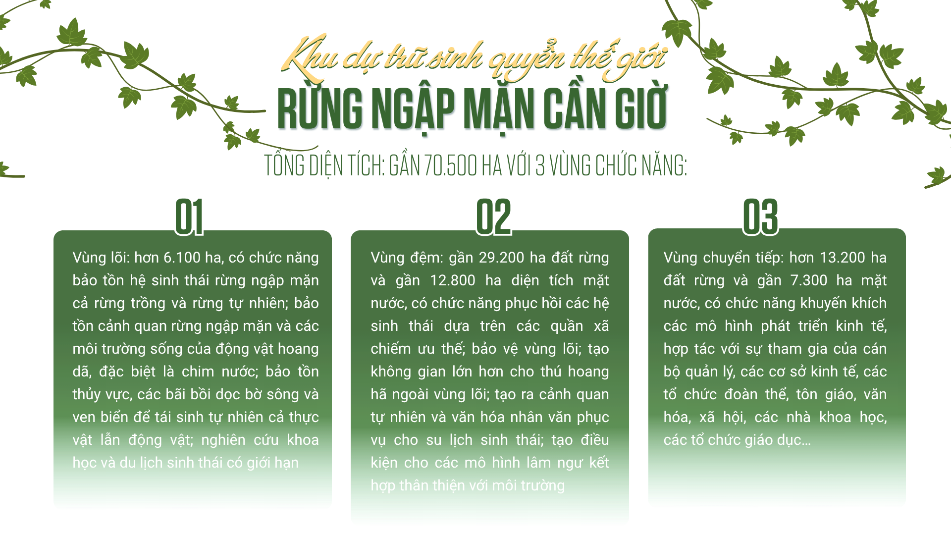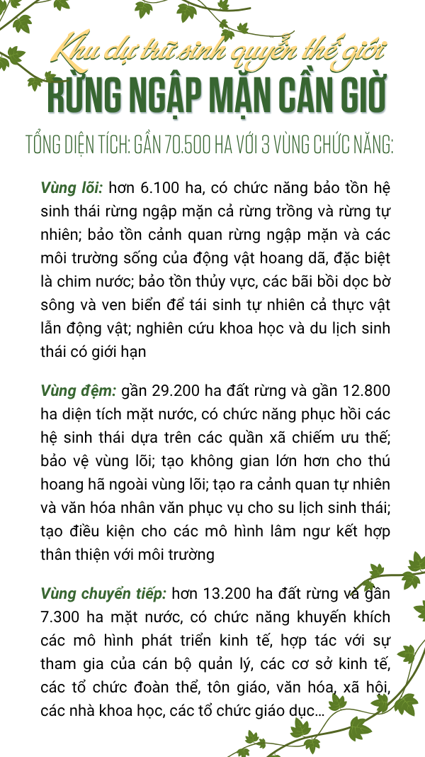 Để đến năm 2000, Rừng ngập mặn Cần Giờ chính thức được UNESCO công nhận Khu dự trữ sinh quyển thế giới đầu tiên của Việt Nam. Đó thực là “kỳ tích”, trong truyền thống năng động, sáng tạo, dám nghĩ, dám làm của Thành phố này.