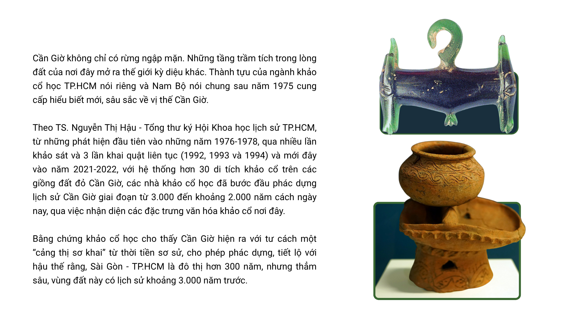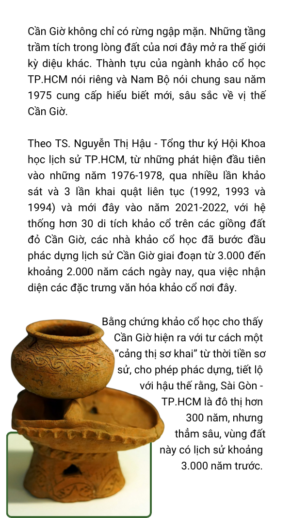 Cần Giờ của siêu đô thị TP.HCM hậu hợp nhất hứa hẹn là điểm đến lý tưởng, hấp dẫn ở loại hình du lịch này, với các sản phẩm du lịch khai thác cả tài nguyên tự nhiên - tiêu biểu là hệ sinh thái rừng ngập mặn điển hình, lẫn tài nguyên văn hóa - nổi bật là văn hóa khảo cổ và văn hóa biển đặc sắc.
