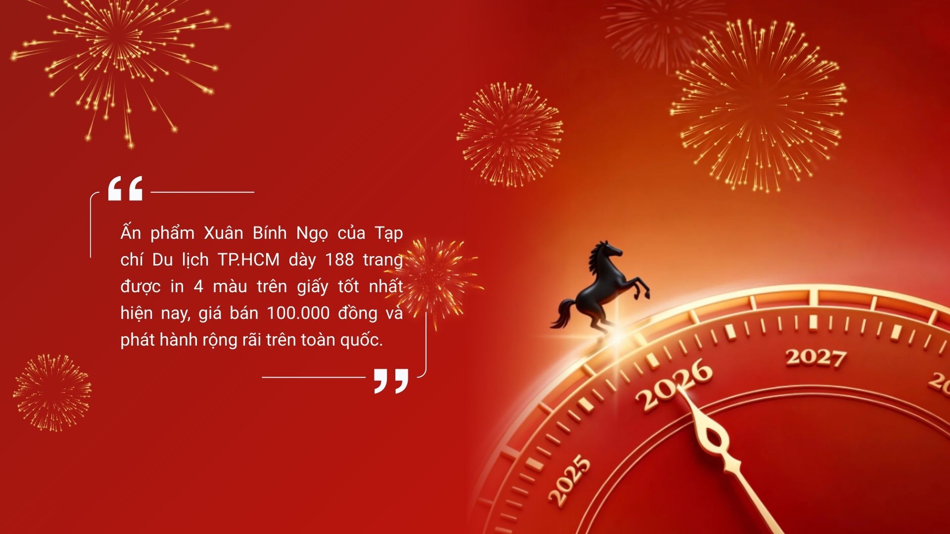 Khép lại năm 2025 và đón chào năm 2026 rực rỡ, Ấn phẩm Xuân Bính Ngọ của Tạp chí Du lịch Thành phố Hồ Chí Minh là một “bữa tiệc” mùa xuân đậm hương vị, màu sắc, như một lời chúc năm mới an lành – thịnh vượng gửi đến quý độc giả.