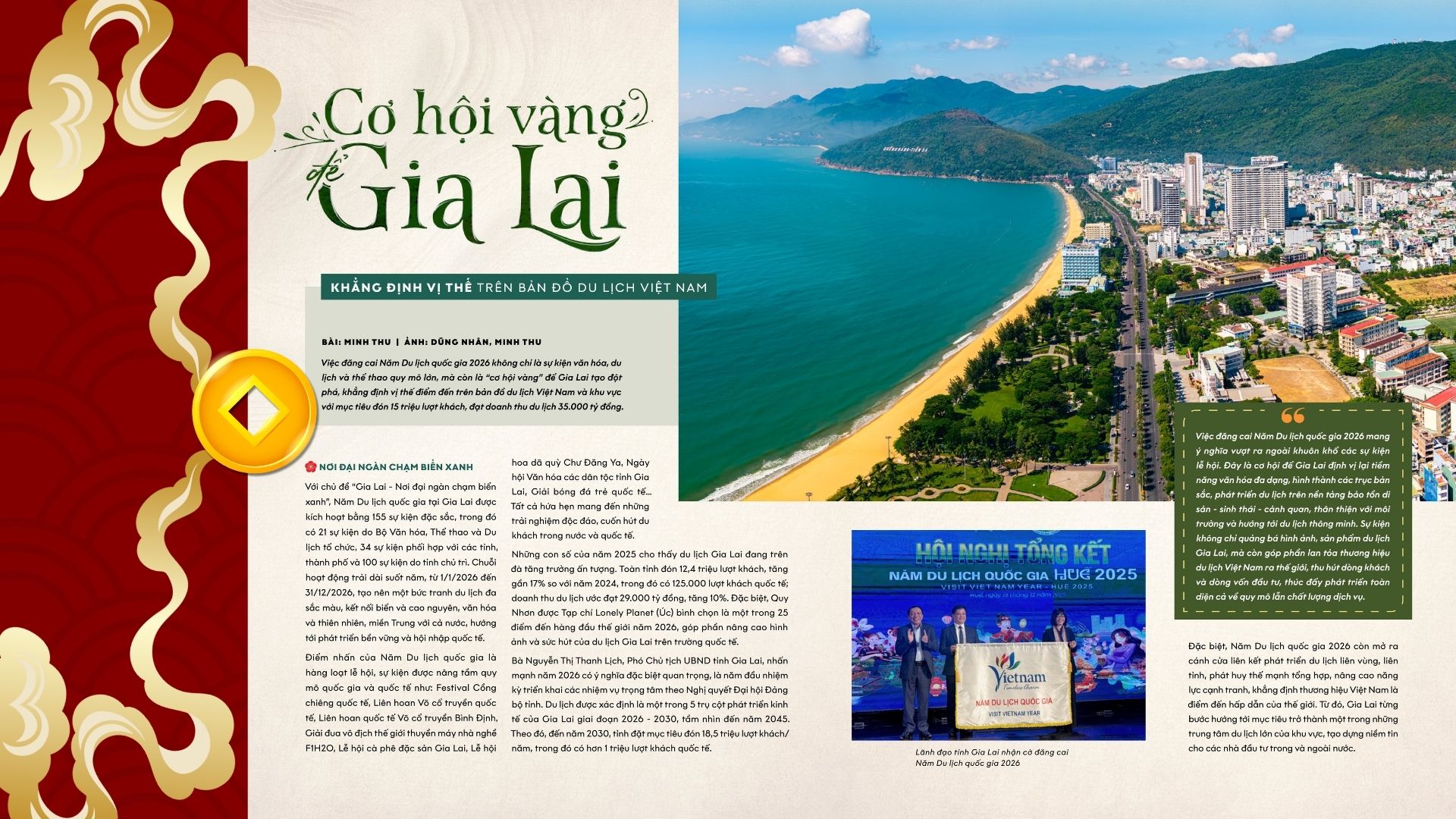 Năm Du lịch quốc gia 2026 được tổ chức tại Gia Lai - nơi đại ngàn chạm biển xanh. Sau sáp nhập, từ một tỉnh chỉ có rừng nay đã có thêm biển. Người dân Gia Lai đang kỳ vọng sự hợp nhất hai vùng đất tưởng như “trái dấu” này sẽ tạo ra một không gian rộng hơn để chứa đựng trong nó những phong phú, những bất ngờ, những hòa trộn, những bản sắc, những giao thoa và cả những khu biệt để làm nên một vùng văn hóa đa dạng, hấp dẫn, kỳ thú và đủ sức níu chân du khách...