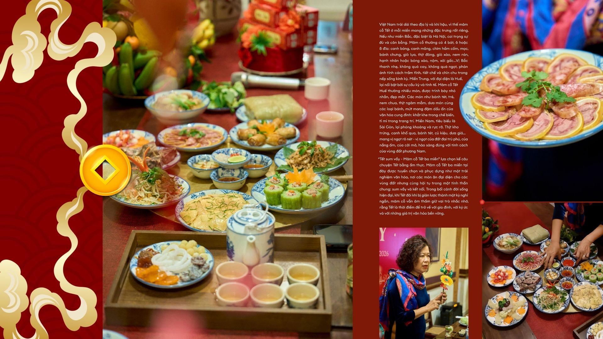 Trong văn hoá Việt, mâm cỗ Tết không đơn thuần là tập hợp các món ăn truyền thống. Đó là lễ vật dâng lên tổ tiên, là lời báo cáo một năm đã qua, là ước vọng cho năm mới bình an, sung túc. Mâm cỗ vì thế luôn mang tính biểu tượng cao: đủ đầy, cân bằng âm - dương, hài hòa màu sắc và hương vị. Nhưng vượt lên ý nghĩa nghi lễ, mâm cỗ còn là “trái tim” của ngày Tết - nơi các thành viên trong gia đình quây quần, chia sẻ và kết nối.