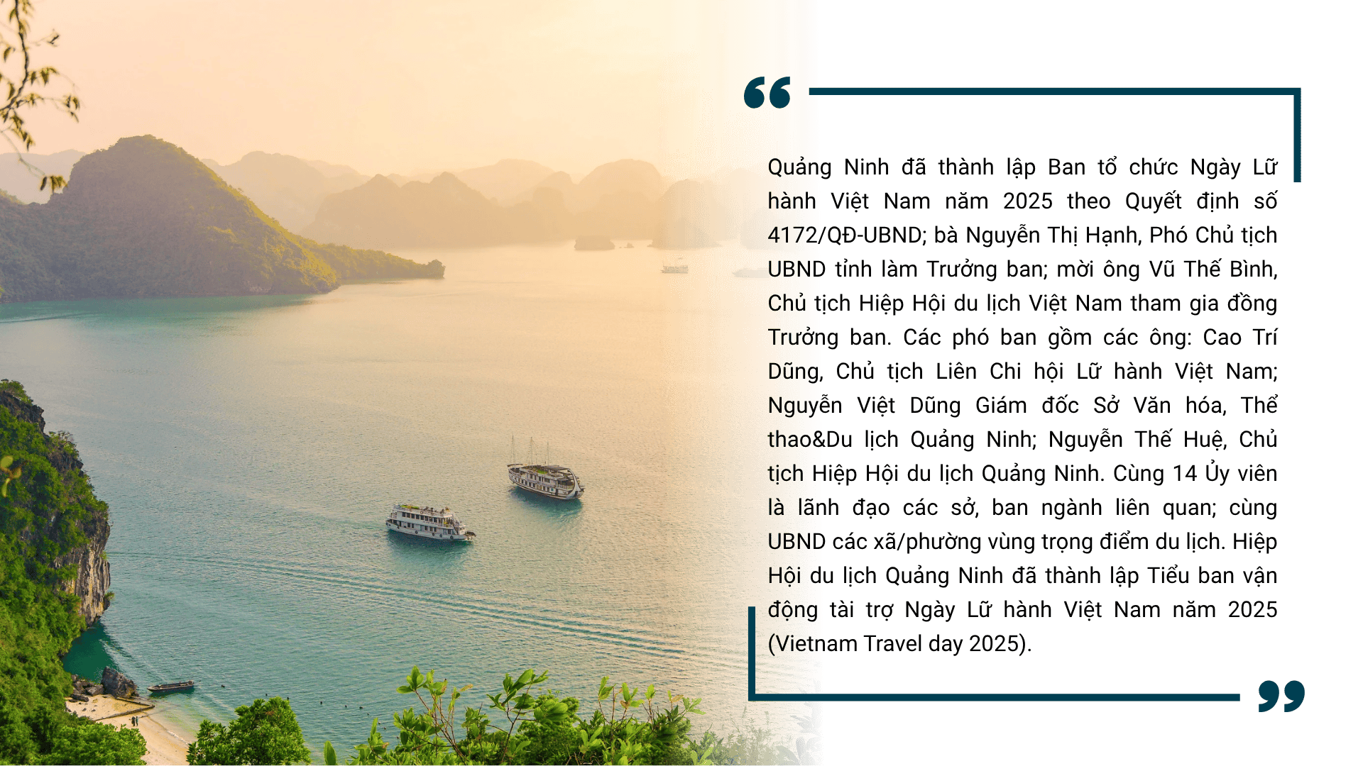 Là đơn vị được Hiệp hội Du lịch Việt Nam và UBND tỉnh Quảng Ninh giao phối hợp tổ chức Ngày Lữ hành Việt Nam lần thứ nhất, Hiệp hội Du lịch Quảng Ninh đã chủ động xây dựng kế hoạch tổng thể, phân công nhiệm vụ rõ ràng cho từng tiểu ban, đảm bảo sự vào cuộc đồng bộ của các doanh nghiệp lữ hành, lưu trú, vận chuyển và điểm đến.
