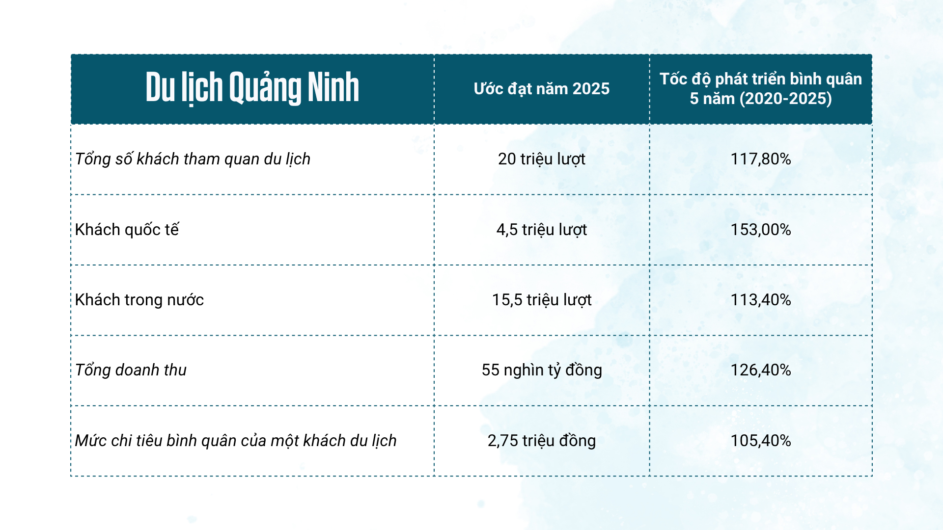 Quảng Ninh thời gian qua đã hình thành bốn vùng du lịch trọng điểm là Hạ Long, Đông Triều - Uông Bí - Quảng Yên, Vân Đồn - Cô Tô và Móng Cái với những sản phẩm đặc sắc trong các loại hình du lịch như du lịch biển đảo, du lịch văn hóa - tâm linh, du lịch cộng đồng - sinh thái, du lịch biên giới. Song, với tiềm năng, thế mạnh của mình, Quảng Ninh được đánh giá là vẫn còn nhiều dư địa phát triển hơn thế.