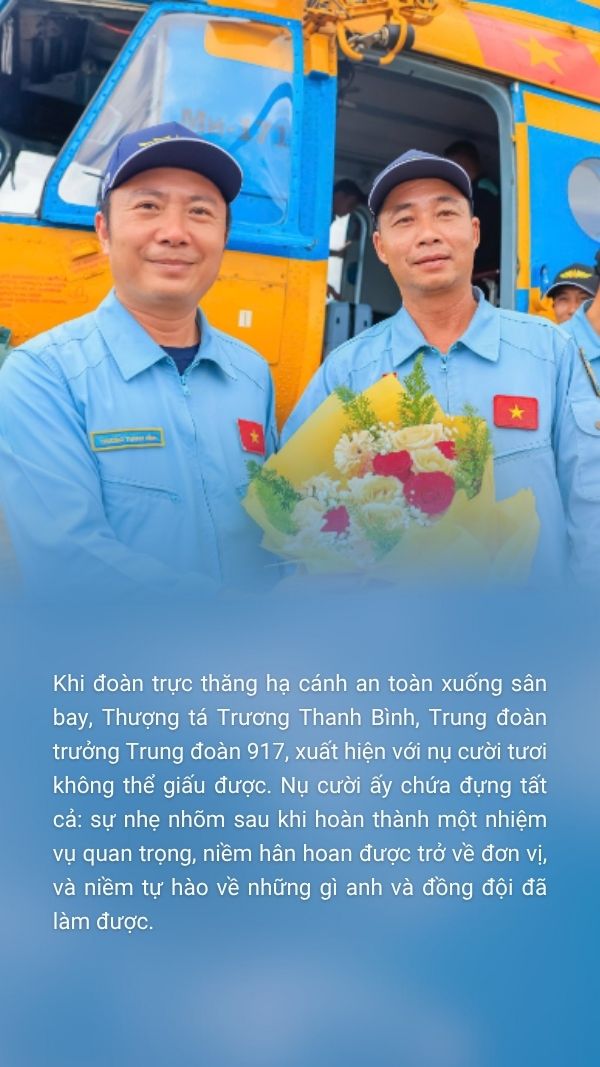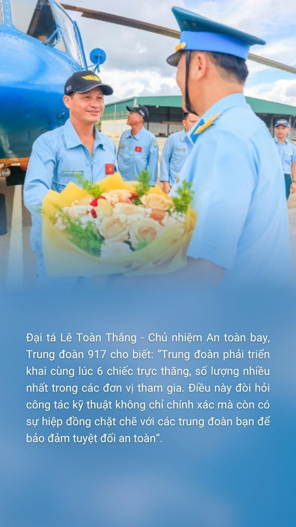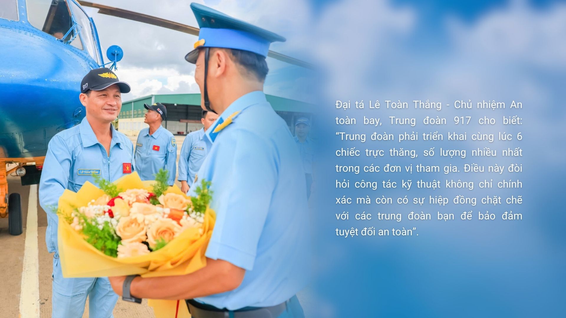 Thượng tá quân nhân chuyên nghiệp Phạm Văn Sơn - Tổ trưởng kỹ thuật Máy bay động cơ (Mi-171: 8431), Phi đội 1, Trung đoàn 917 chia sẻ: “Chúng tôi xác định rõ đây là nhiệm vụ chính trị đặc biệt, yêu cầu cao nhất về an toàn. Anh em kỹ thuật phải làm việc liên tục ngày đêm, kiểm tra, bảo dưỡng, thay thế và hiệu nghiệm từng chi tiết để máy bay luôn trong trạng thái sẵn sàng chiến đấu”.