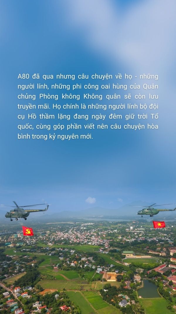 Ít ai biết rằng chỉ 15 phút bay trên bầu trời Thủ đô trong ngày đại lễ, nhưng đổi lại là nhiều tháng ròng ngày đêm luyện tập trên phi trường của một tập thể những chiến binh thép. Những giọt mồ hôi đã rơi, những khó khăn thử thách liên tục đặt ra, những áp lực là không thể đong đếm, nhưng có một điều ai cũng cảm nhận rõ rệt là là tinh thần “vượt nắng thắng mưa” quyết tâm hoàn thành xuất sắc nhiệm vụ và một vinh dự trong đời người lính khi được góp phần làm nên thành công của A80.