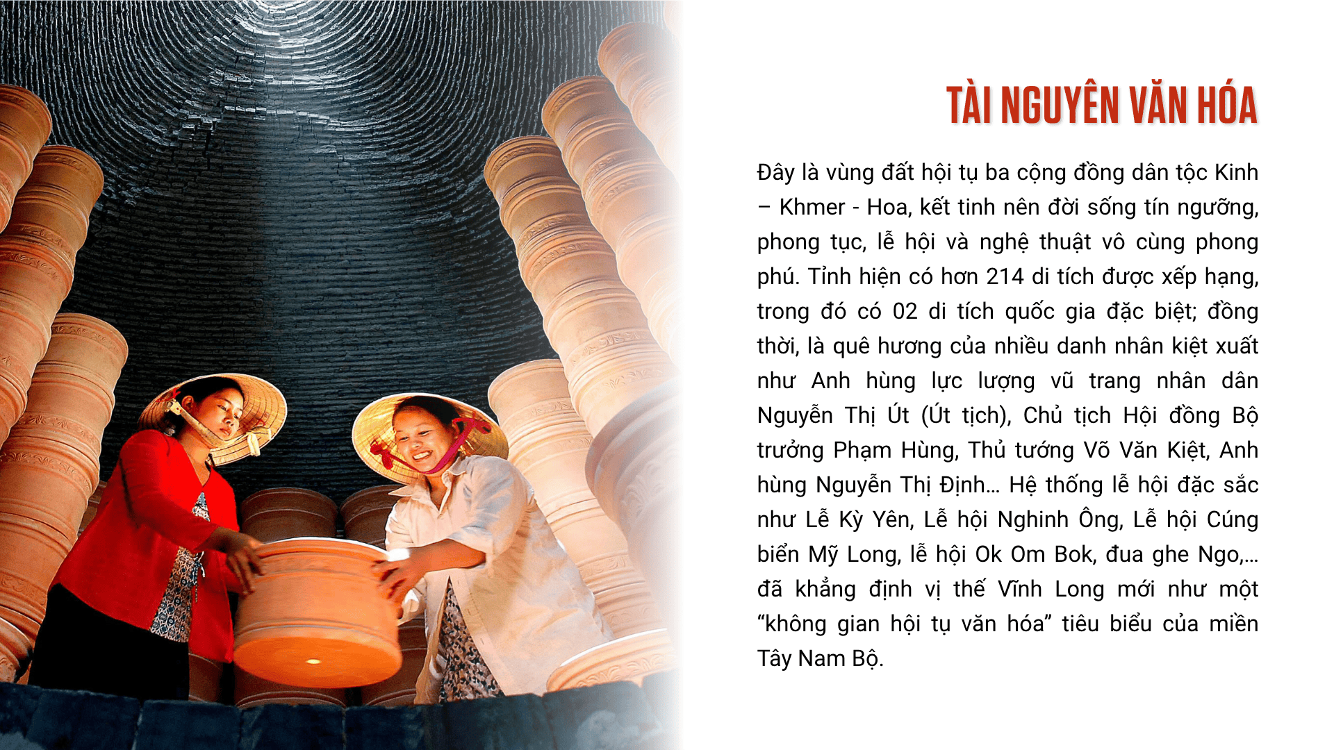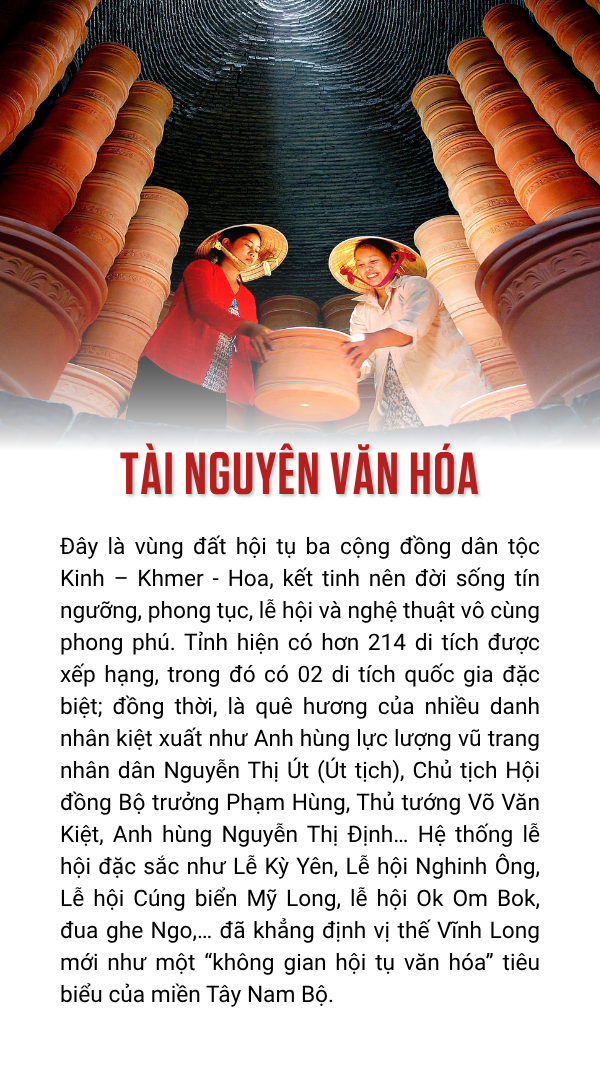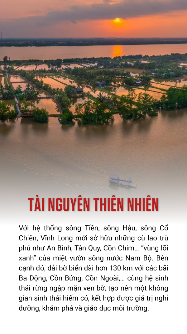 Vĩnh Long hôm nay không chỉ giàu tiềm năng tự nhiên, mà còn là vùng đất có chiều sâu lịch sử và văn hóa, quê hương của nhiều danh nhân và các bậc cách mạng tiền bối; là không gian hội tụ bản sắc văn hóa Khmer, Kinh và Hoa đặc sắc. Đặc biệt, tinh thần Đồng Khởi - di sản tinh thần thiêng liêng của dân tộc Việt Nam, biểu tượng của ý chí độc lập, tự cường và sức mạnh đoàn kết - được tôn vinh như một trụ cột giá trị của tỉnh Vĩnh Long mới. Sự kết hợp giữa tài nguyên sinh thái phong phú, bản sắc văn hóa đa dạng và tinh thần Đồng Khởi sẽ là nền tảng để tỉnh phát triển du lịch gắn với bảo tồn, khẳng định bản sắc, đồng thời chủ động hội nhập khu vực và quốc tế, từng bước đưa Vĩnh Long trở thành điểm đến có thương hiệu trên bản đồ du lịch Việt Nam và thế giới.