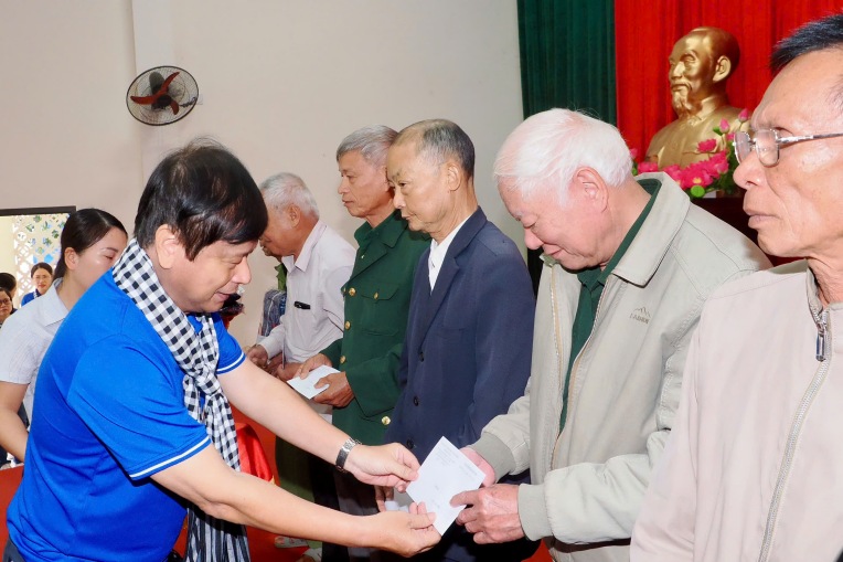 Theo đó, đoàn công tác đã trao tặng 500 lá cờ Tổ quốc đến tỉnh Thái Nguyên; trao 20 phần quà cho 20 hộ gia đình chính sách có hoàn cảnh khó khăn (mỗi phần quà gồm 1.000.000 đồng tiền mặt và 2 áo ấm); trao 30 phần quà cho 30 hộ gia đình có hoàn cảnh khó khăn bị thiệt hại nặng trong cơn bão số 11 và đợt lũ, lụt vừa qua (mỗi phần quà gồm 3.000.000 đồng tiền mặt và 2 áo ấm); trao 50 suất quà cho 50 em học sinh có hoàn cảnh khó khăn vươn lên trong học tập (mỗi suất quà gồm 1.000.000 đồng tiền mặt). Chia sẻ với chúng tôi, các hộ gia đình đều bày tỏ xúc động khi được đoàn công tác từ miền Nam xa xôi ra thăm hỏi và tặng quà, góp phần giúp bà con vơi bớt khó khăn trong cuộc sống.