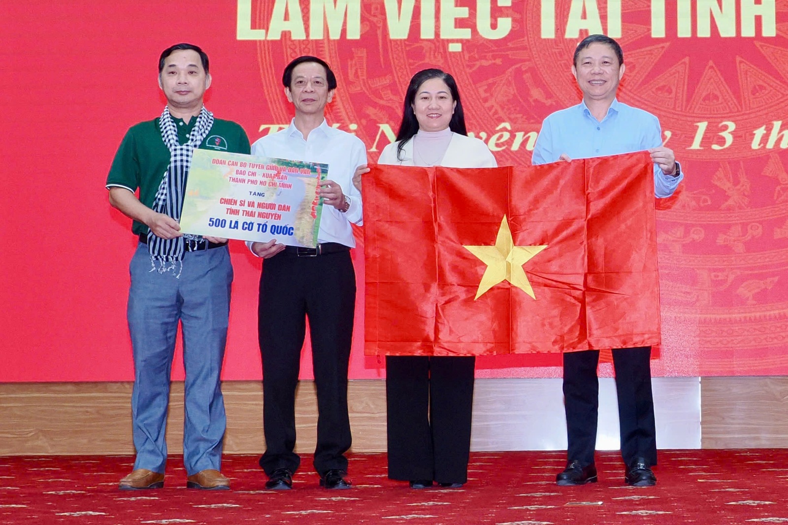 Đoàn công tác tuyên giáo và dân vận, báo chí - xuất bản TP.HCM cũng gửi tặng Ban Tuyên giáo và Dân vận Tỉnh ủy Thái Nguyên tủ sách không gian văn hóa Hồ Chí Minh.