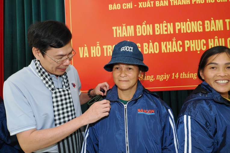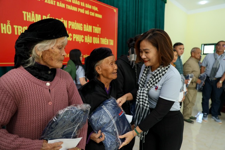 Đại diện đoàn, ông Tăng Hữu Phong, Phó Ban Tuyên giáo và Dân vận TP.HCM, trực tiếp trao các phần quà và chia sẻ rằng, đây là tấm lòng của các cơ quan báo chí, anh chị em phóng viên Thành phố gửi đến bà con Đàm Thủy, Đình Phong - nơi có 2 dân tộc chủ yếu sinh sống là người Tày và người Nùng, thể hiện tinh thần đoàn kết, sẻ chia.